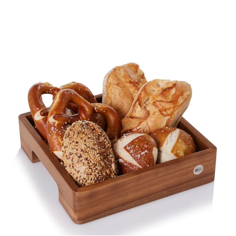 Taca pięknie prezentuje koloryt naturalnego drewna a wysokie boki skutecznie zabezpieczają przenoszoną zawartość na przykład w postaci bułeczek, kromek chleba czy stołowe ozdoby.