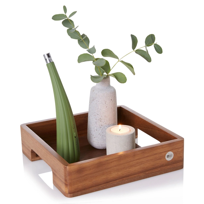 Materiał: boki - drewno akacjowe, spód - płyta w okleinie z drewna orzechowego.