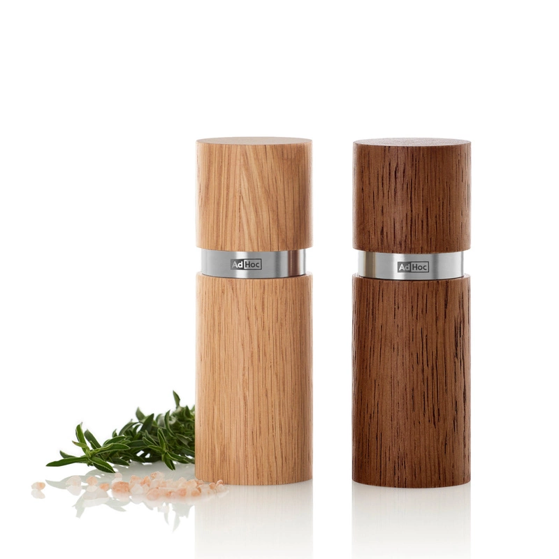 AdHoc - Zestaw młynków do pieprzu i soli Textura XS jasny/ciemny dąb