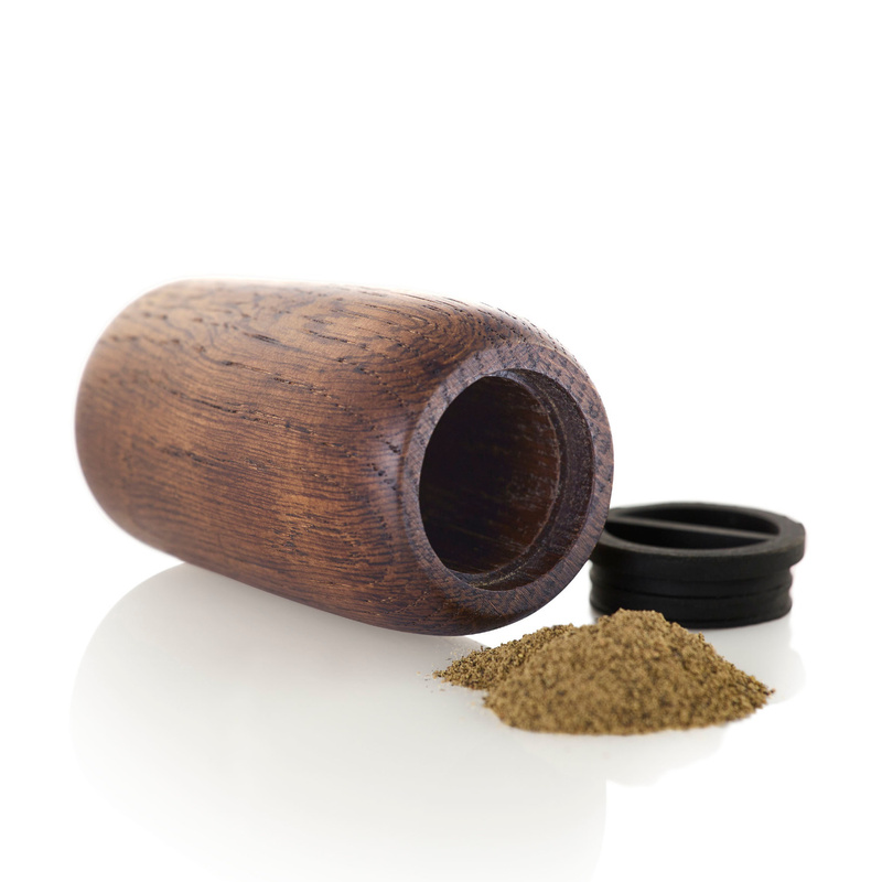 Dębowy, owalny przyprawnik YOKO przyjemnie leży w dłoni.