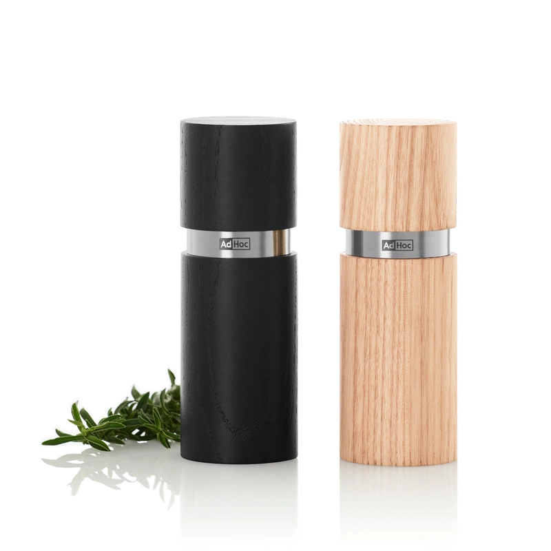 AdHoc - Zestaw młynków jesionowych do pieprzu i soli Textura XS jasny/ciemny