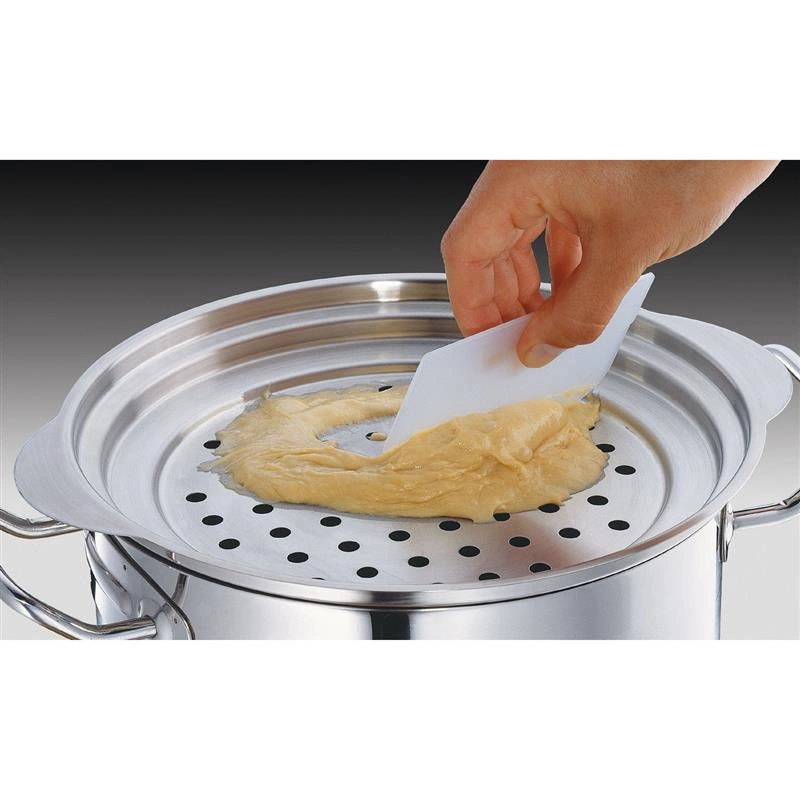 Nakładka na garnek, niemieckiej marki Kuchenprofi. Nakładka na garnek do przygotowania lanych klusek, wykonana ze stali nierdzewnej.