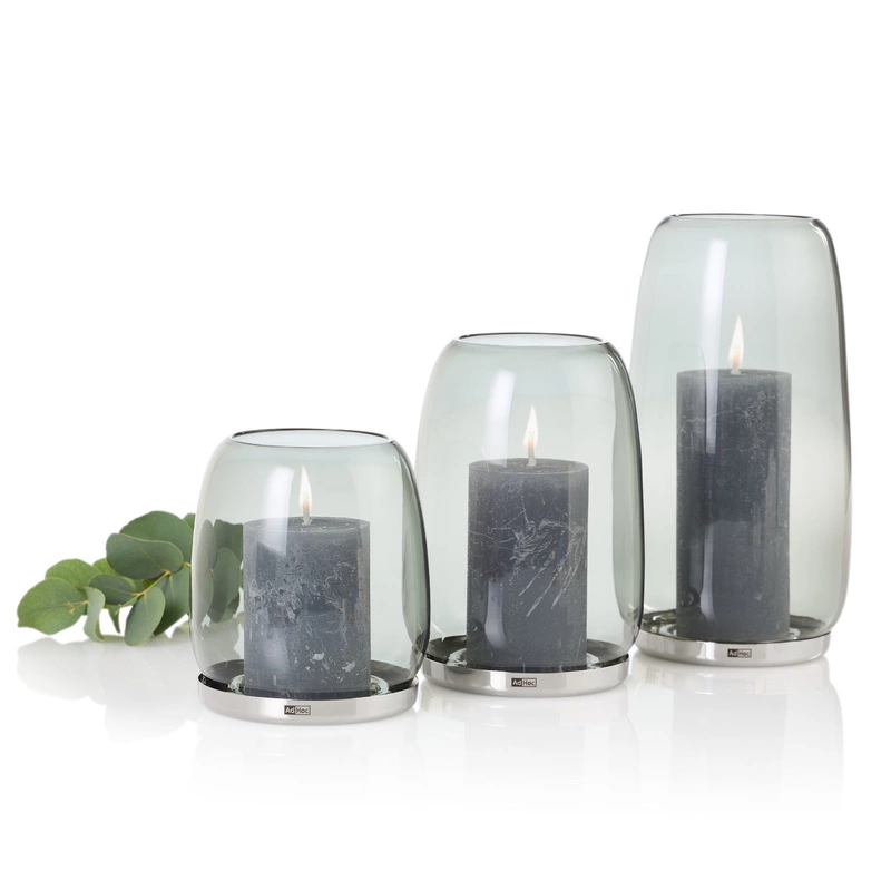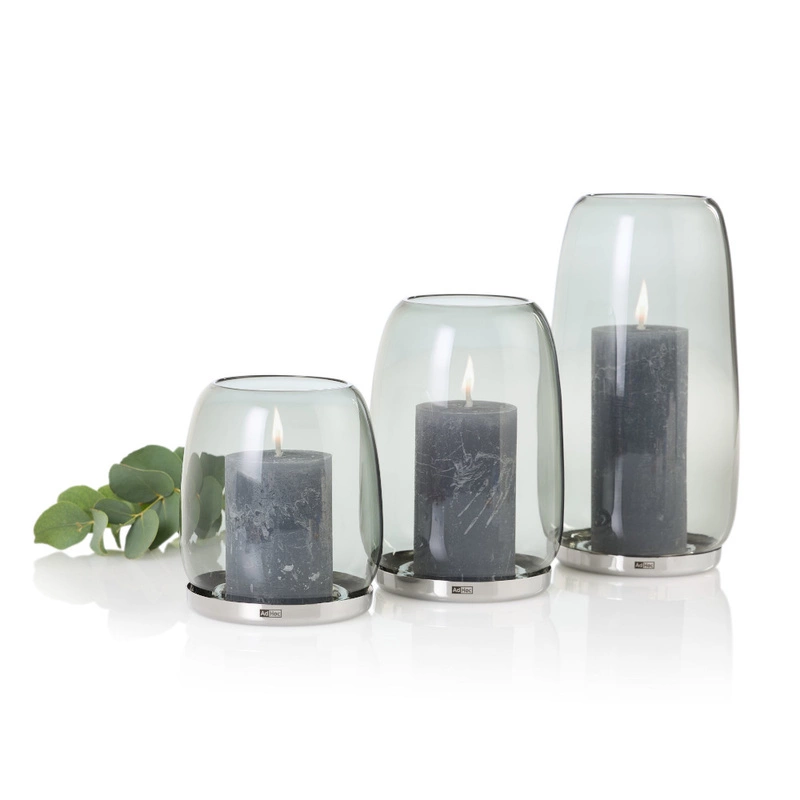 Polerowana stal nierdzewna podstawy idealnie pasuje do wielu typów tealightów i świeczek, a silikonowe stopki utrzymują lampion stabilnie w miejscu oraz minimalizują ilość osadzającej się sadzy.