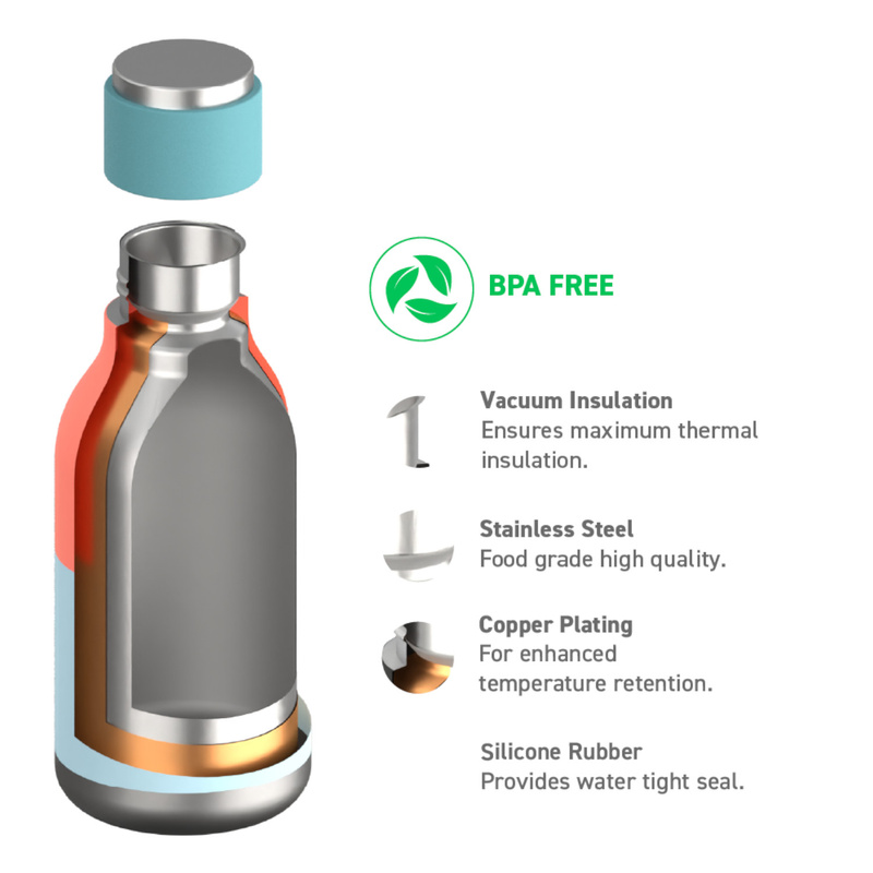 Materiał: stal nierdzewna 18/8, tworzywo BPA Free, silikon, miedź.