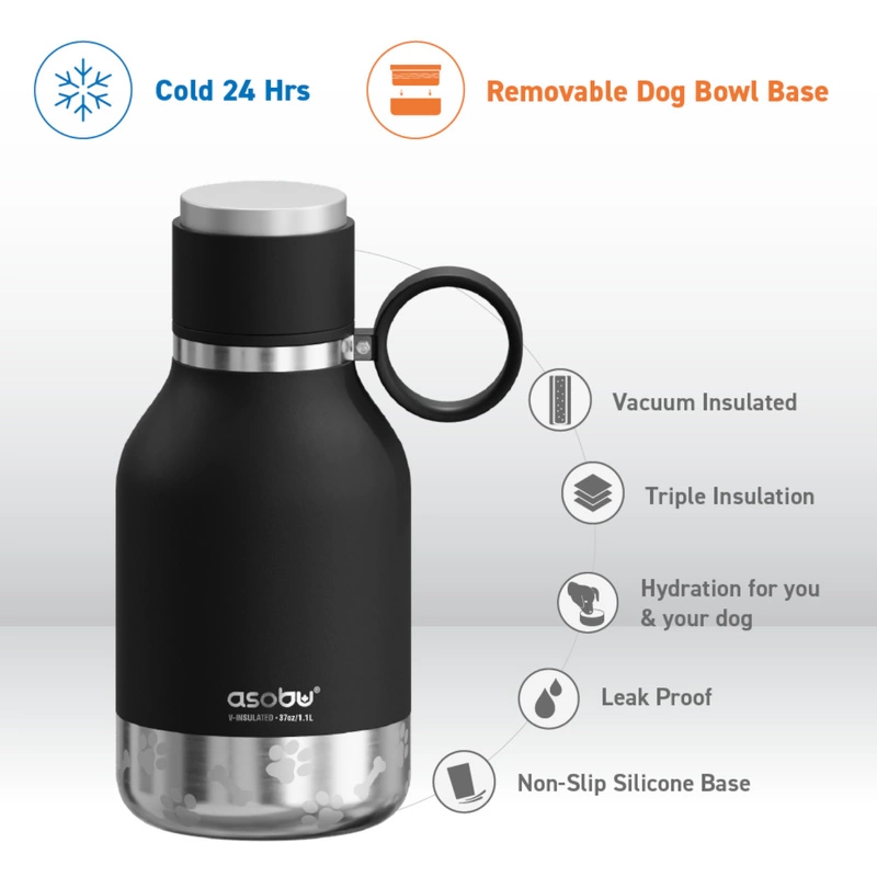 Asobu - Butelka STAINLESS z miską dla psa czarna, 975ml