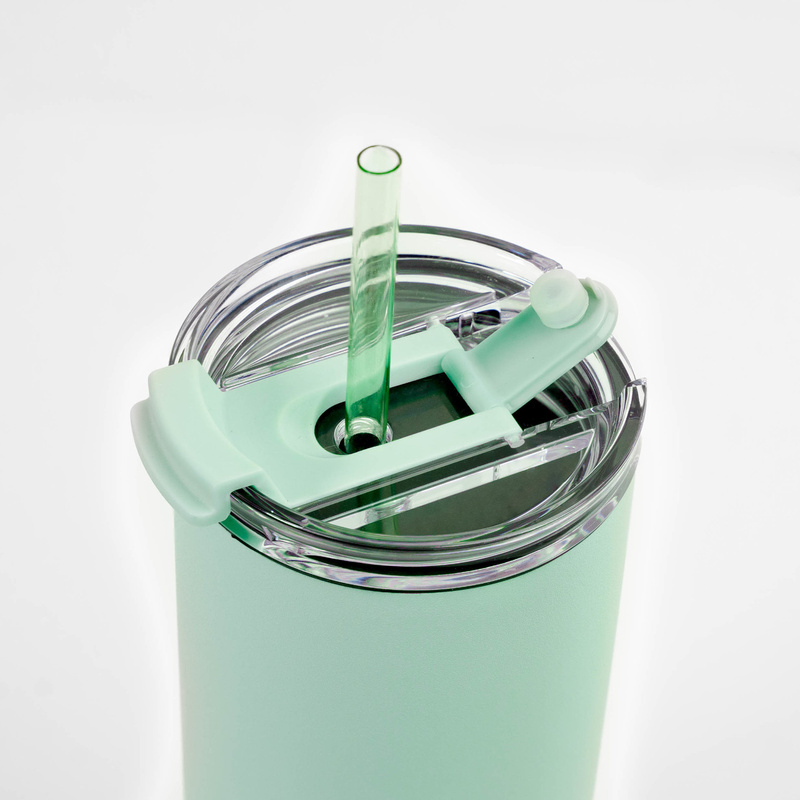 Podwójnie funkcjonalna pokrywa ma otwór na słomkę (słomka w zestawie!), który można z łatwością zamknąć, tworząc odchylaną pokrywkę, dzięki czemu możesz popijać gorącą kawę w drodze do biura.