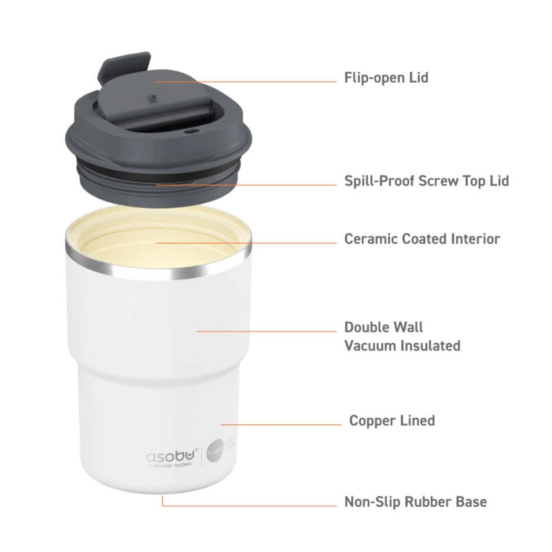 Kawa bez metalicznego posmaku z metalowego kubka, z kubkiem The Mini Pick Up ASOBU to możliwe.