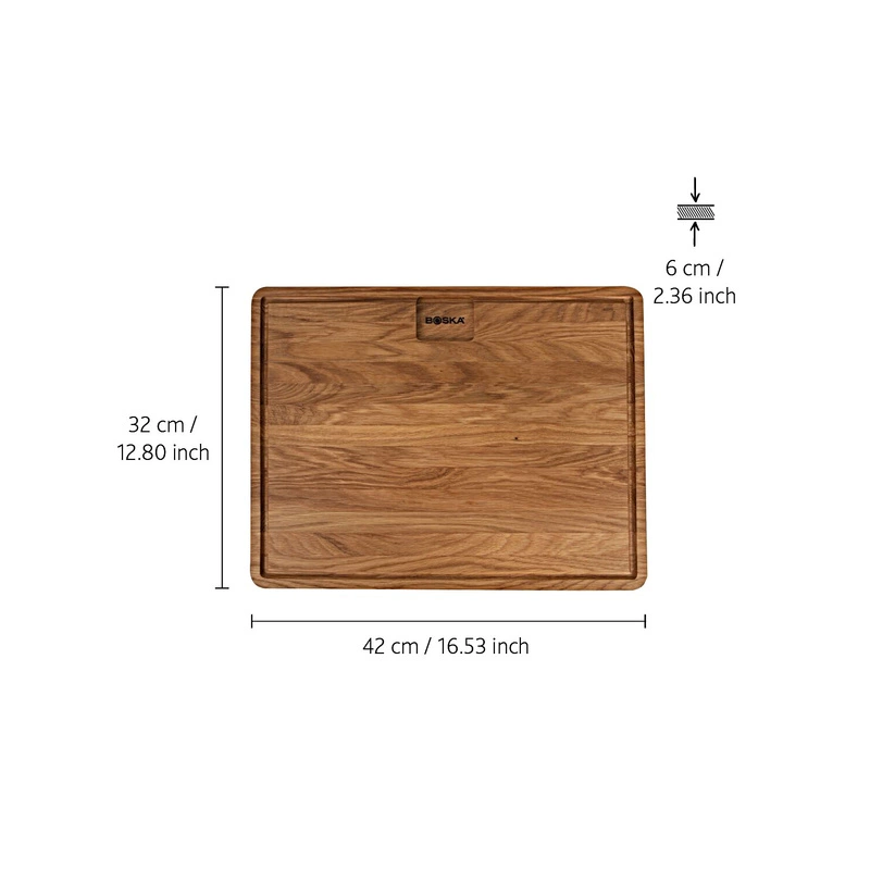 Deska wykonana jest z drewna dębowego, jej ponadczasowy design z łatwością wpisze się w każdy wystrój domu.