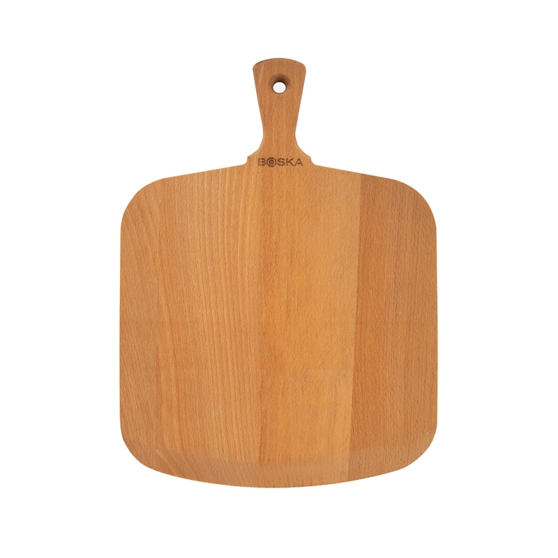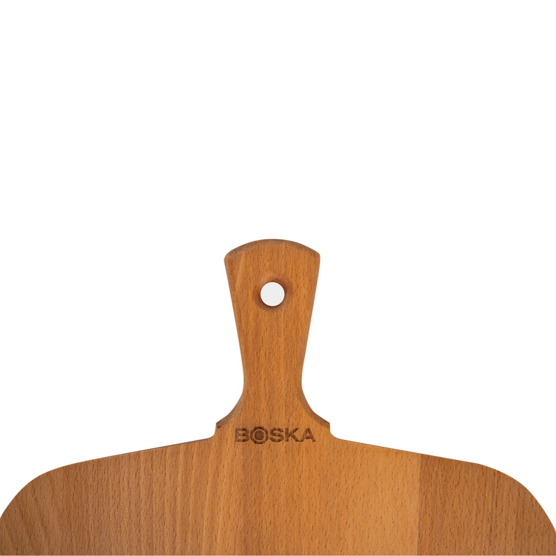 Jej mniejszy rozmiar, ścięta krawędź, poręczna rączka oraz materiał - drewno bukowe sprawia, że można ją od razu położyć na stole jak stylową deskę do serwowania.