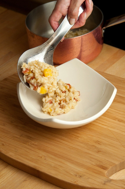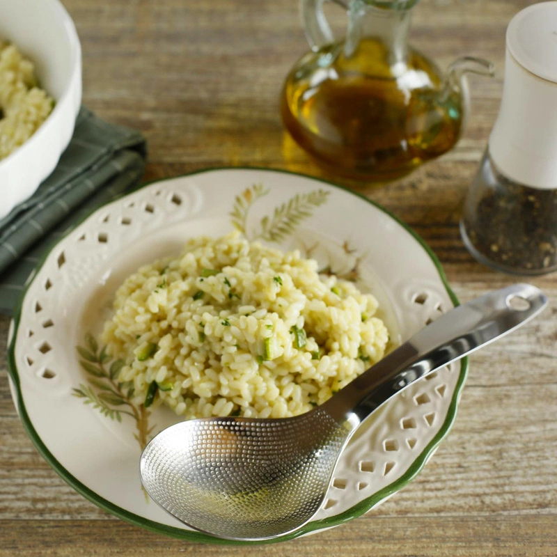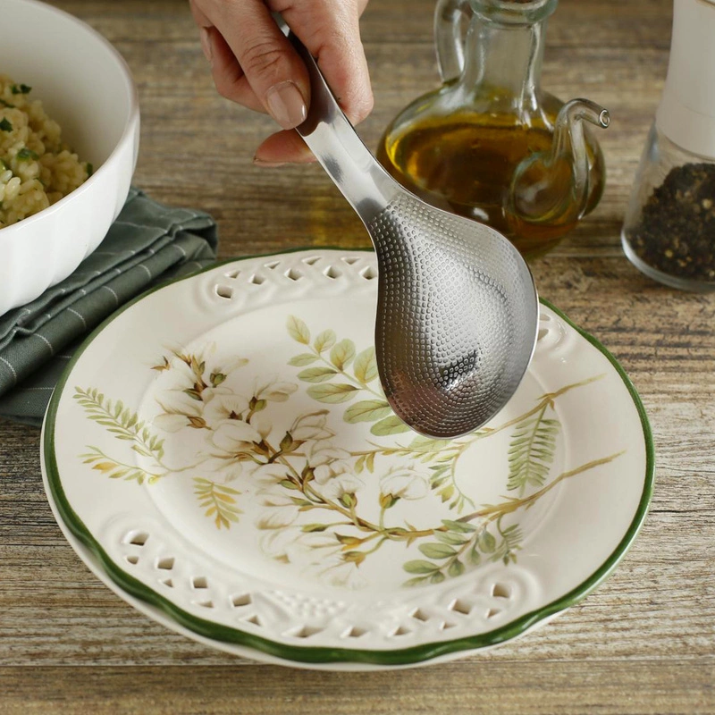 Łyżka do ryżu o punktowanej powierzchni, która zapobiega przyklejaniu się ryżu. Można jej użyć także do lodów i kremowych deserów. Łatwa w czyszczeniu. Produkt może nosić ślady produkcyjne, które w żadnej mierze nie wpływają na jego walory użytkowe.