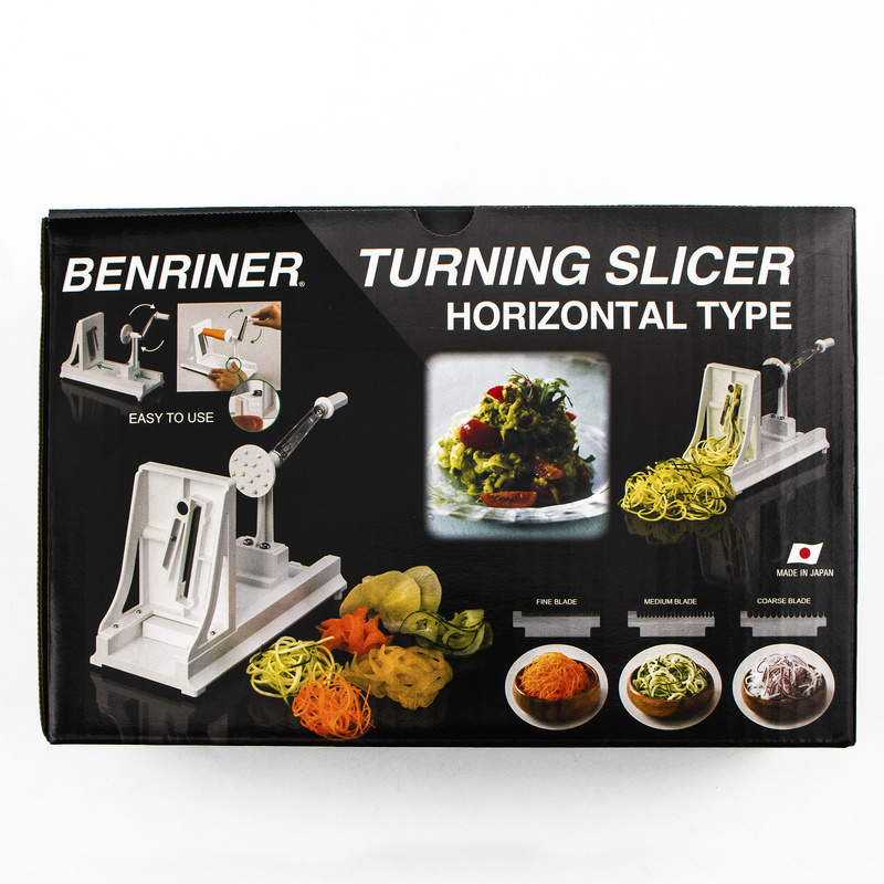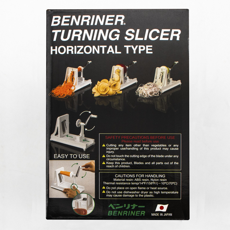 Pozioma krajalnica spiralna do warzyw marki Benriner to narzędzie, które rewolucjonizuje przygotowywanie surówek i sałatek, znane również jako spiralizer lub Turning Slicer. Pozwala na krojenie warzyw i owoców w spiralne paseczki i nitki. W zestawie znajdują się cztery ostrza: jedno proste i trzy ząbkowane (1 mm, 2,5 mm, 4 mm).