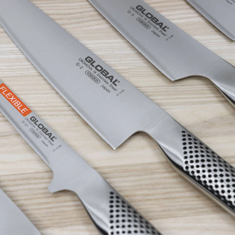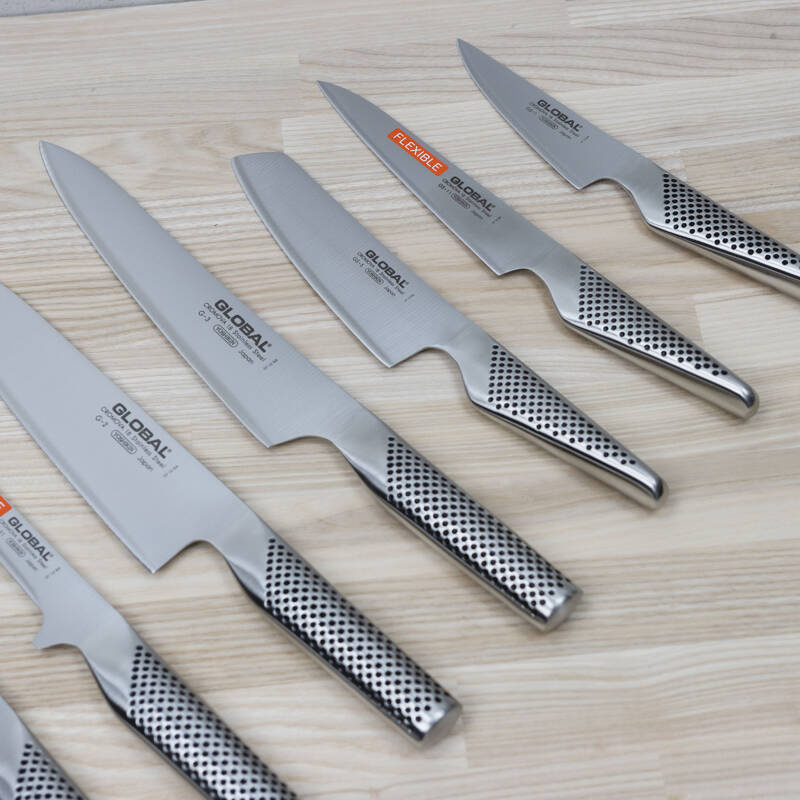 Global Zestaw noży w gładkim bloku 8 częściowyZestaw zawiera: