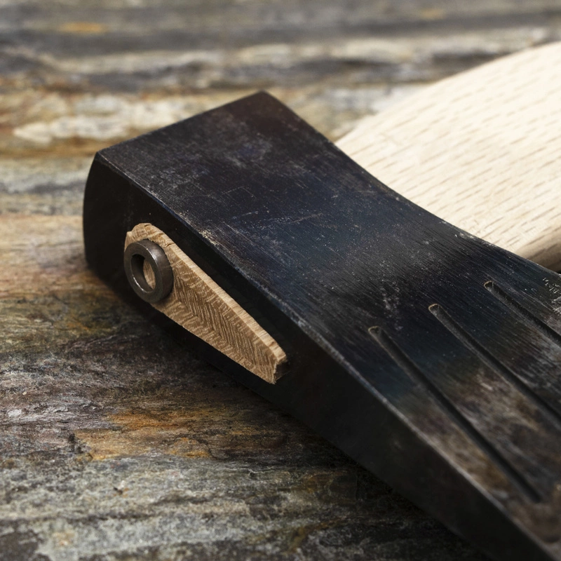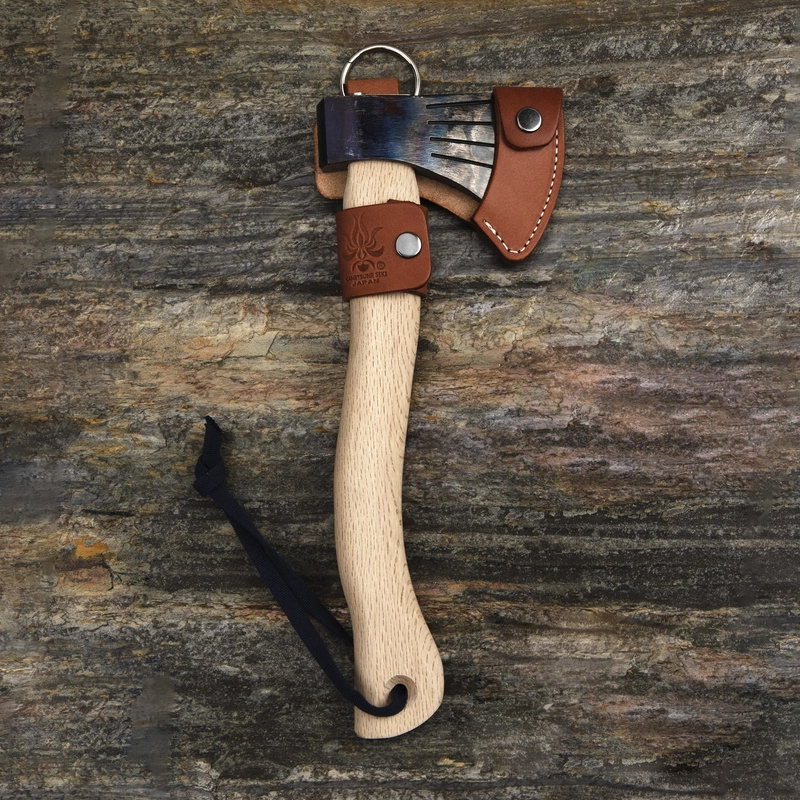 Siekiera wyprodukowana w Japonii. Trzonek jest wykonany z drewna dębu, i został wyprofilowany dla wygodniejszej pracy. W zestawie z siekierą znajduje się osłona na ostrze z możliwością założenia na pas.