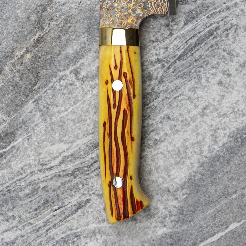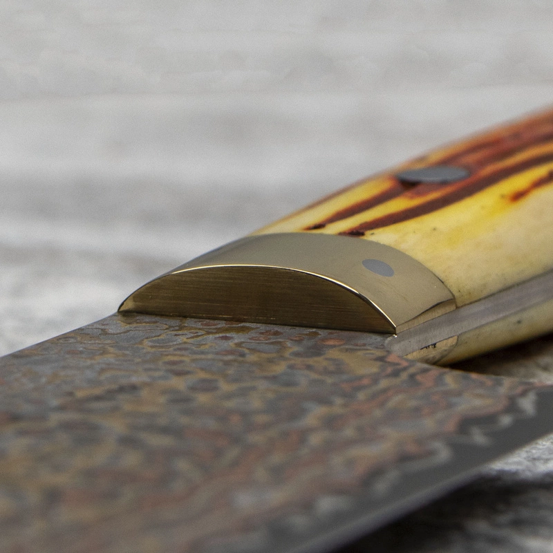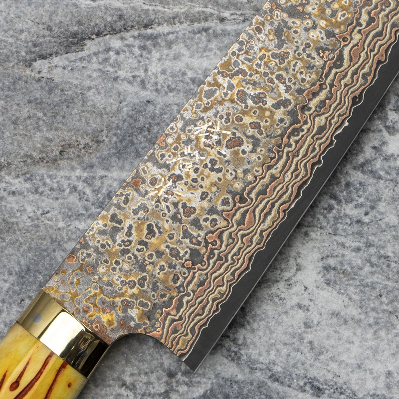 Ostrze - rdzeń stal nierdzewna VG-10 okuta warstwami miedzi i mosiądzu