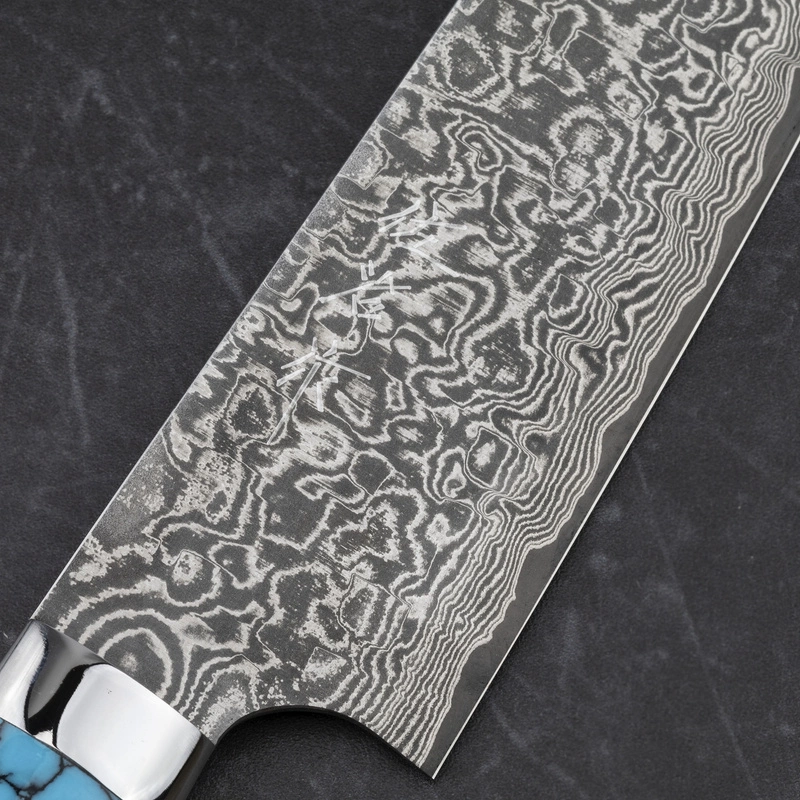 Rękojeść – niebieski turkus ze stalowym bolsterem wykończonym na wysoki połysk