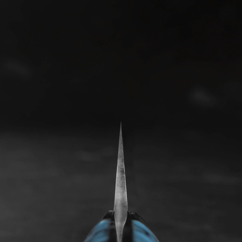 Rękojeść – niebieski turkus ze stalowym bolsterem wykończonym na wysoki połysk