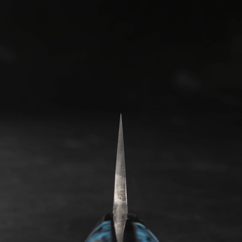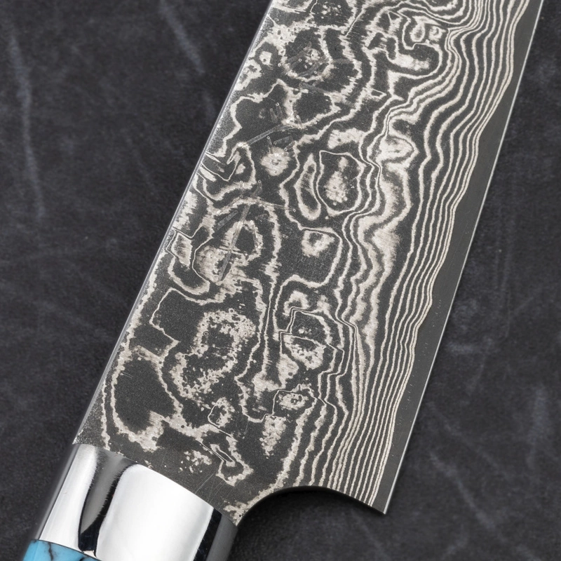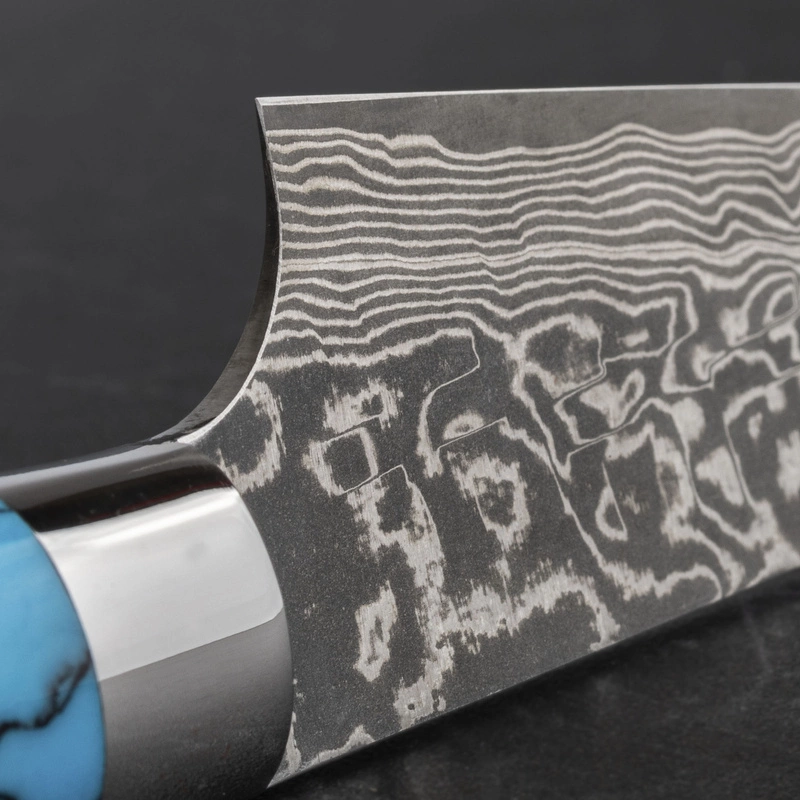 Rękojeść – niebieski turkus ze stalowym bolsterem wykończonym na wysoki połysk