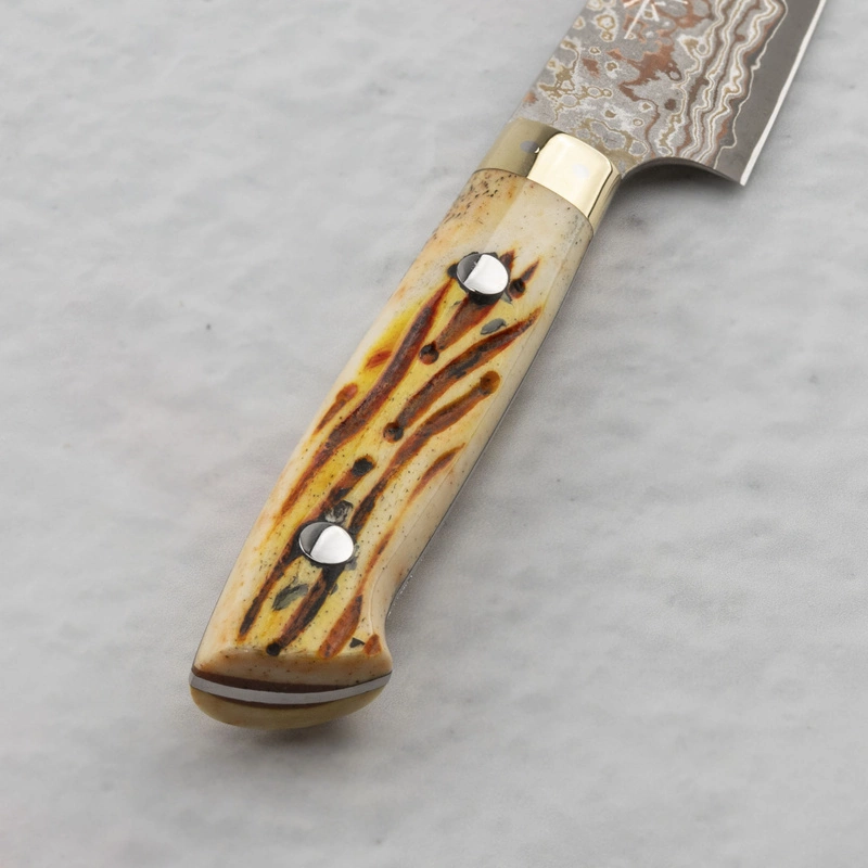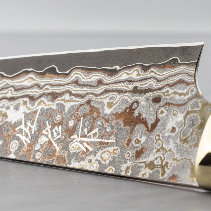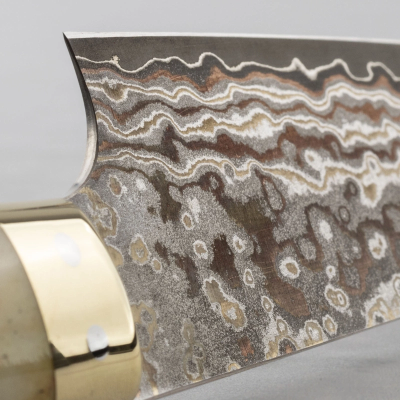 Ostrze - rdzeń stal nierdzewna VG-10 okuta warstwami miedzi i mosiądzu