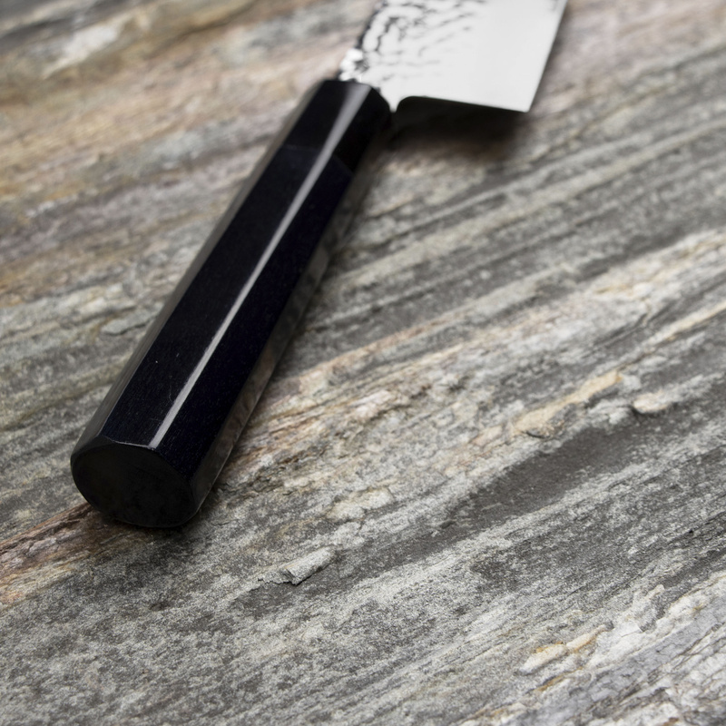 Wielofunkcyjny japoński nóż kuchenny, przeznaczony do krojenia warzyw, mięsa i ryb. Posiada obniżony czubek, który znacznie ułatwia szatkowanie, oraz szerokie ostrze, na które można zgarnąć pokrojone produkty, żeby je przenieść np. do sałatki. Doskonale się sprawdza w każdych warunkach pracy, ponieważ dzięki wysoko położonej rękojeści palce nie dotykają deski ani jedzenia.