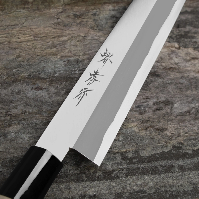 Nóż do sashimi (Yanagi) to tradycyjny japoński nóż, który służy do krojenia świeżych filetów na niemal przezroczyste plastry. Znakomicie się sprawdza podczas przygotowywania sushi, rybnego carpaccio oraz innych potraw z bardzo delikatnych składników. Długie, wąskie i sztywne ostrze zapewnia drobiazgową precyzję, a jednostronny szlif – czyste cięcie. Nożem Yanagi najlepiej wykonywać jednostajny ruch w jednym kierunku: do siebie.