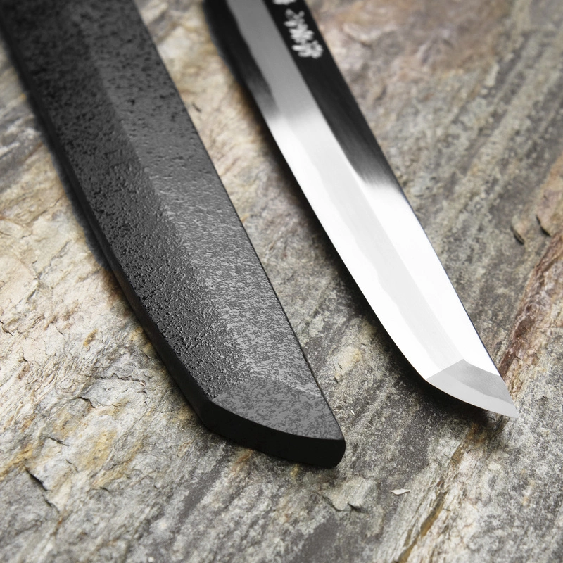 Nóż Sakimaru to tradycyjny japoński nóż kuchenny o ostrzu w kształcie skrzydła. Jego nazwa pochodzi od słowa "saki", które oznacza szpic, i "maru", co oznacza okrągły. Ostrze jest szerokie u podstawy i stopniowo zwęża się do końca, tworząc szpiczaste zakończenie. Ten nóż jest zwykle używany do krojenia mięsa i ryb oraz do wykonywania precyzyjnych cięć, a jego długi i zwężający się kształt umożliwia łatwe i płynne cięcie przez składniki.