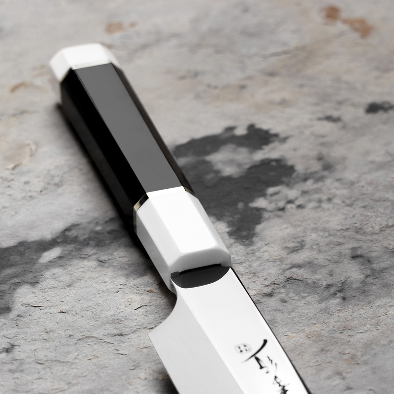 Nóż do sashimi (Yanagi) to tradycyjny japoński nóż, który służy do krojenia świeżych filetów na niemal przezroczyste plastry. Znakomicie się sprawdza podczas przygotowywania sushi, rybnego carpaccio oraz innych potraw z bardzo delikatnych składników. Długie, wąskie i sztywne ostrze zapewnia drobiazgową precyzję, a jednostronny szlif – czyste cięcie. Nożem Yanagi najlepiej wykonywać jednostajny ruch w jednym kierunku: do siebie.