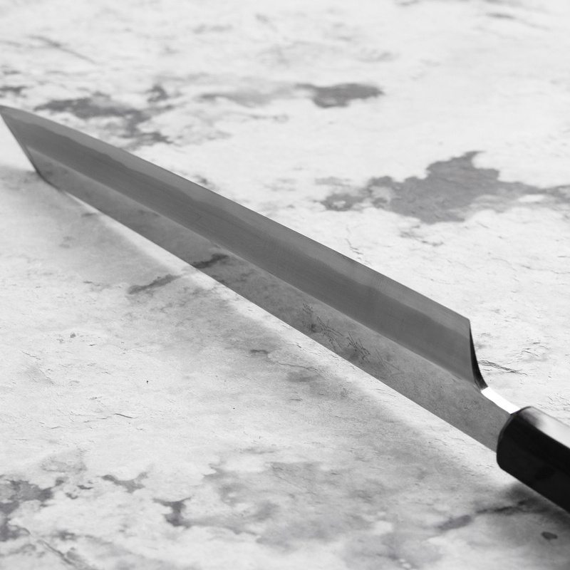 Nóż do sashimi (Yanagi) to tradycyjny japoński nóż, który służy do krojenia świeżych filetów na niemal przezroczyste plastry. Znakomicie się sprawdza podczas przygotowywania sushi, rybnego carpaccio oraz innych potraw z bardzo delikatnych składników. Długie, wąskie i sztywne ostrze zapewnia drobiazgową precyzję, a jednostronny szlif – czyste cięcie. Nożem Yanagi najlepiej wykonywać jednostajny ruch w jednym kierunku: do siebie.