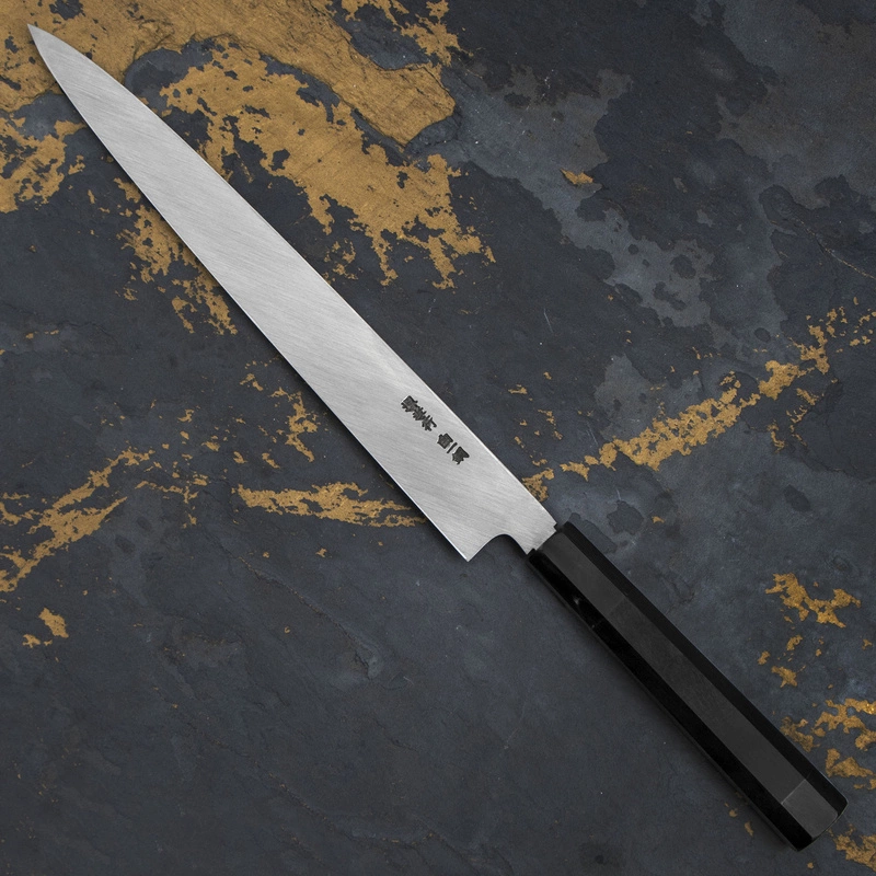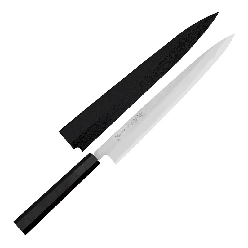 Nóż do sashimi (Yanagi) to tradycyjny japoński nóż, który służy do krojenia świeżych filetów na niemal przezroczyste plastry. Znakomicie się sprawdza podczas przygotowywania sushi, rybnego carpaccio oraz innych potraw z bardzo delikatnych składników. Długie, wąskie i sztywne ostrze zapewnia drobiazgową precyzję, a jednostronny szlif – czyste cięcie. Nożem Yanagi najlepiej wykonywać jednostajny ruch w jednym kierunku: do siebie.