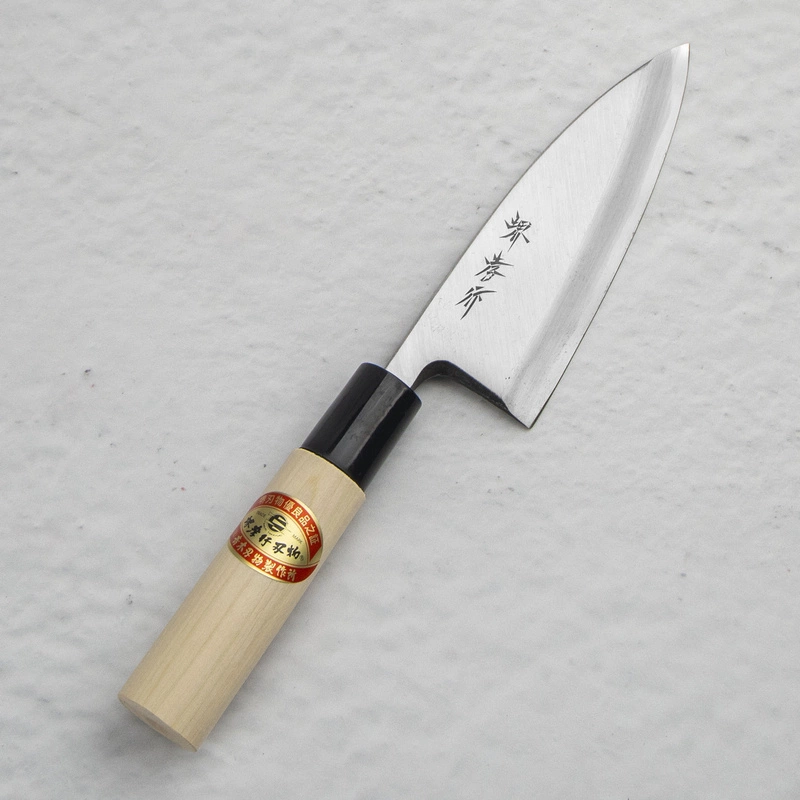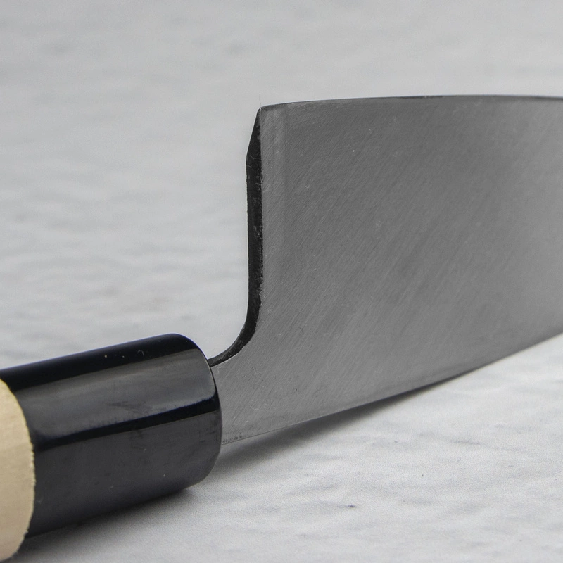 Tradycyjny japoński nóż z grubą, zwężającą się klingą, który służy do odgławiania i filetowania ryb w taki sposób, żeby nie uszkodzić ich delikatnego mięsa. W Japonii bywa często używany do sprawiania mięsa drobiowego, ale nie jest klasycznym tasakiem i nie powinno się nim mocno uderzać. Aby przeciąć ość, wystarczy lekko nacisnąć grzbiet noża i wykonać szybkie, precyzyjne cięcie. Ostry czubek i krótkie ostrze ułatwiają kontrolę ruchów, co jest szczególnie ważne, gdy trzeba dostać się nożem do ciasnych miejsc.