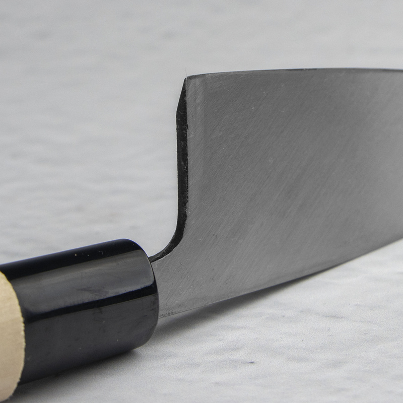 Tradycyjny japoński nóż z grubą, zwężającą się klingą, który służy do odgławiania i filetowania ryb w taki sposób, żeby nie uszkodzić ich delikatnego mięsa. W Japonii bywa często używany do sprawiania mięsa drobiowego, ale nie jest klasycznym tasakiem i nie powinno się nim mocno uderzać. Aby przeciąć ość, wystarczy lekko nacisnąć grzbiet noża i wykonać szybkie, precyzyjne cięcie. Ostry czubek i krótkie ostrze ułatwiają kontrolę ruchów, co jest szczególnie ważne, gdy trzeba dostać się nożem do ciasnych miejsc.