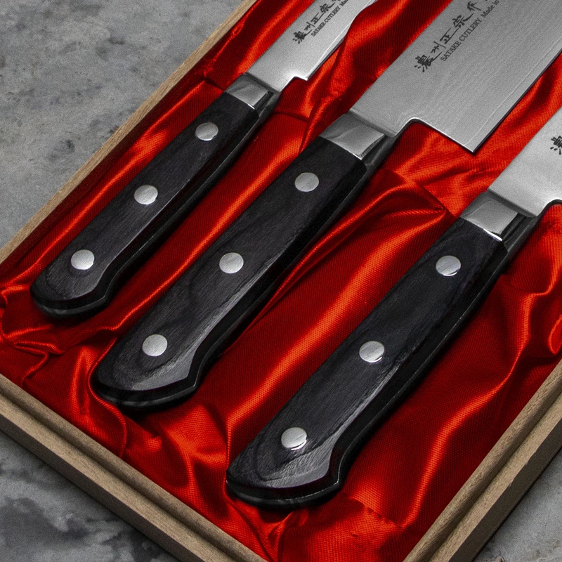 Zestaw 3 noży kuchennych Satake Daichi w drewnianym pudełku
