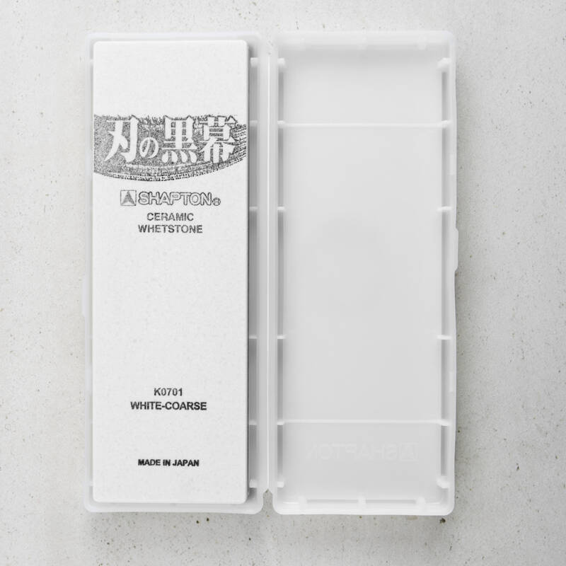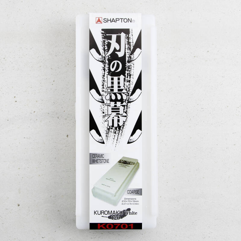 Kamienie Shapton to najwyższa jakość kamieni do ostrzenia. Seria Kuromaku to pierwsza seria kamieni, która konsekwentnie miała przypisany kolor do gradacji – w przypadku większych zestawów usprawnia to wybór odpowiedniego kamienia. Pudełko na kamień może służyć jako podstawka do ostrzenia.