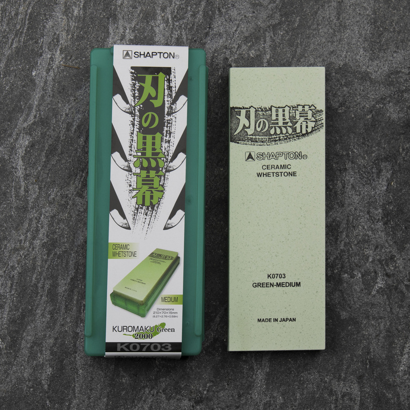 Kamienie Shapton to najwyższa jakość kamieni do ostrzenia. Seria Kuromaku to pierwsza seria kamieni, która konsekwentnie miała przypisany kolor do gradacji – w przypadku większych zestawów usprawnia to wybór odpowiedniego kamienia. Pudełko na kamień może służyć jako podstawka do ostrzenia.