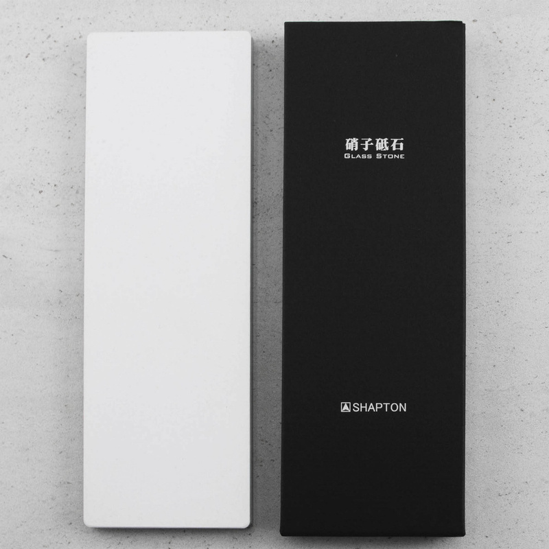 Kamienie Shapton z serii Glass to najnowocześniejsze rozwiązania w kwestii znanej ludzkości od tysięcy lat. Ostrzenie noży na kamieniach Glass, przebiega szybko I sprawnie. Do podstawy wykonanej z hartowanego szkła, przytwierdzany jest materiał ścierny – biały korund, jeden z najtwardszych minerałów na świecie, dzięki temu charakteryzują się widocznie dłuższą żywotnością niż tradycyjne kamienie. Kamienie Glass nie wymagają takiego przygotowania jak tradycyjne kamienie wodne, wystarczy przed ostrzeniem spryskać je wodą, bez długotrwałego przechowywania w zbiorniku.