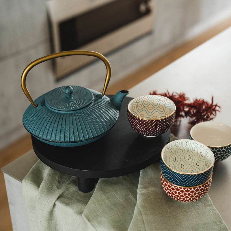 - wykonany jest z żeliwa szybko się nagrzewa i kumuluje ciepło przez co można się dłużej cieszyć gorącą herbatą