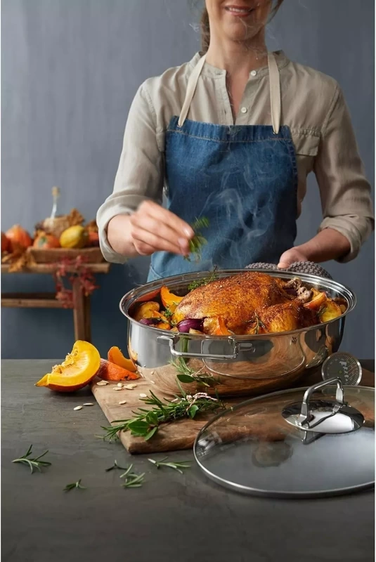 Brytfanna stalowa WMF ze szklaną pokrywą w komplecie z termometrem do mięs