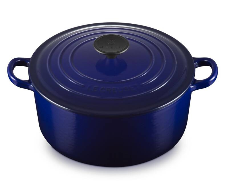 Piękny, klasyczny i ponadczasowy garnek żeliwny Le Creuset , firmy, która od 1925 roku produkuje we Francji naczynia żeliwne.