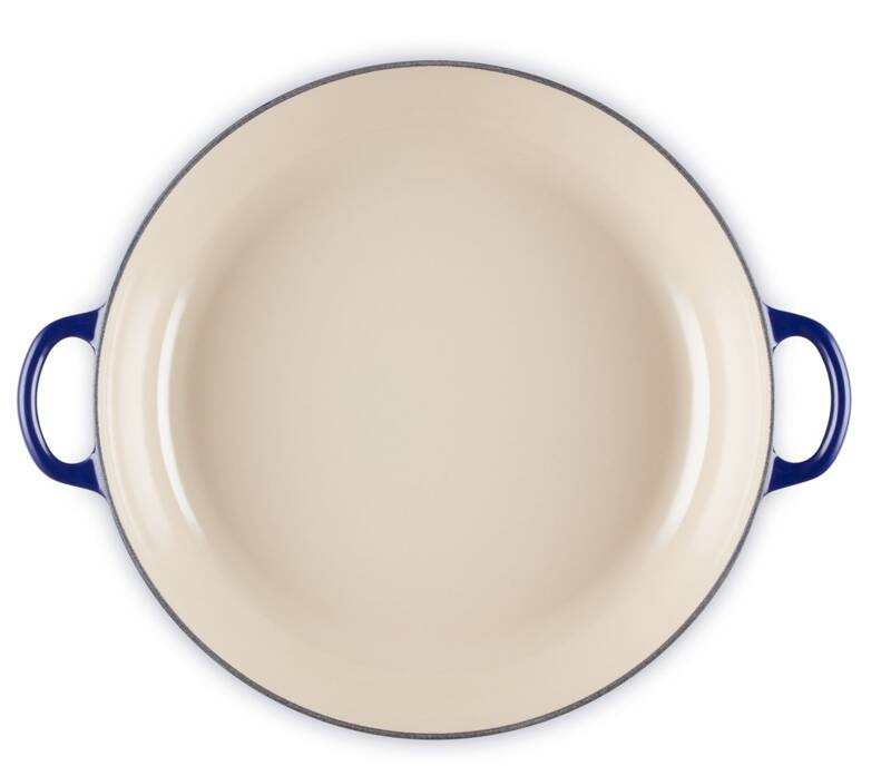 Emaliowany, żeliwny garnek Gourmet francuskiej firmy Le Creuset średnica 30 cm o pojemność 3,5L. Według Le Creuset to garnek Gourmet według nas może być również głęboką patelnią lub płaską brytfanną. Duża średnica przydaje się przy większych ilościach czy bardziej objętościowych daniach. Możesz smażyć, piec, zapiekać - jak to w żeliwie Le Creuset, możesz przygotować różne danie a służyć będzie wiele lat.