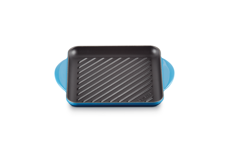 kwadratowa patelnia do grillowania 24 cm francuskiej firmy Le Creuset koloru azure