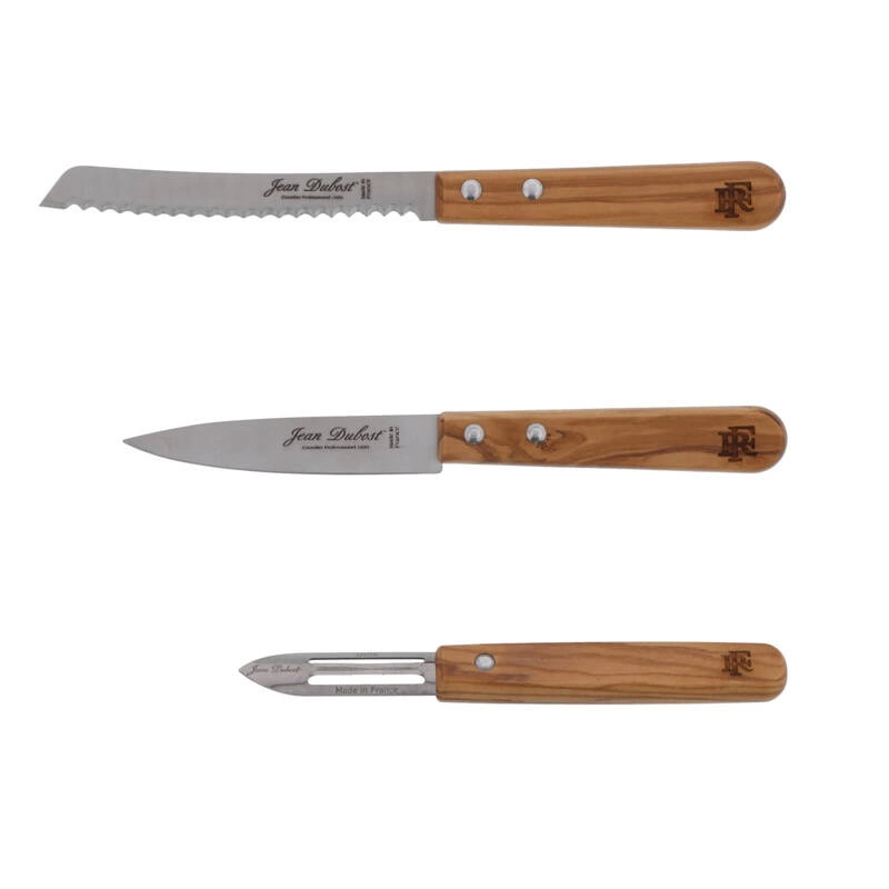 Jean Dubost - Zestaw 3 nożyków kuchennych - drewno oliwne - pudełko L'ELYSEE