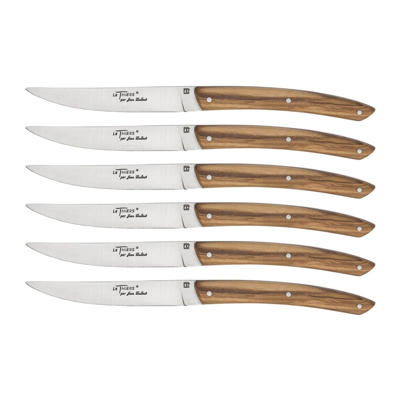 Jean Dubost - 6 noży Thiers - drewno oliwne - pudełko