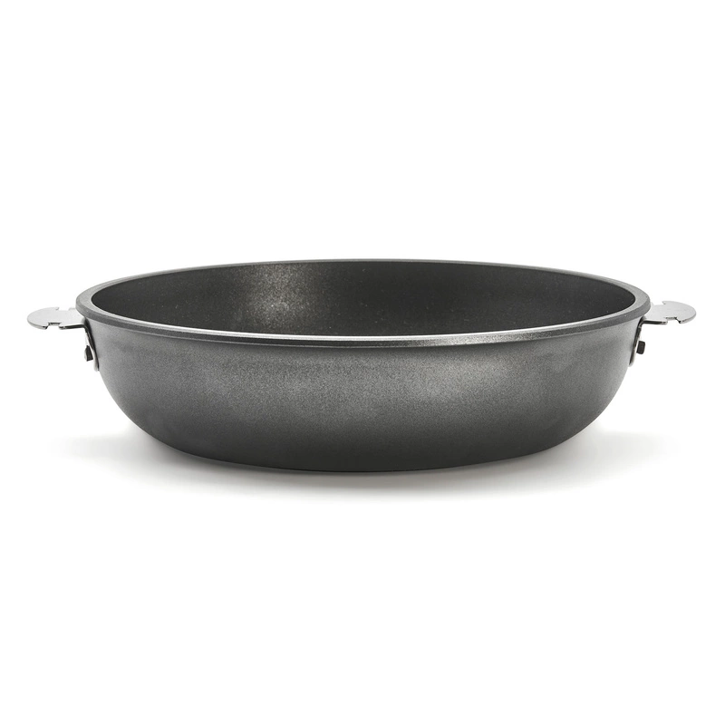 Seria naczyń CHOC EXTREME marki deBuyer to połączenie najwyższej jakości rzemiosła, wyjątkowej trwałości i eleganckiego designu. Wykonane z odlewanego pod ciśnieniem aluminium o grubości 7 mm, gwarantują odporność na deformacje i równomierne rozprowadzanie ciepła. Powłoka nieprzywierająca PTFE, wolna od PFOS i PFOA, zapewnia zdrowe gotowanie z minimalną ilością tłuszczu i trwałość nawet o 50% dłuższą niż standardowe rozwiązania.