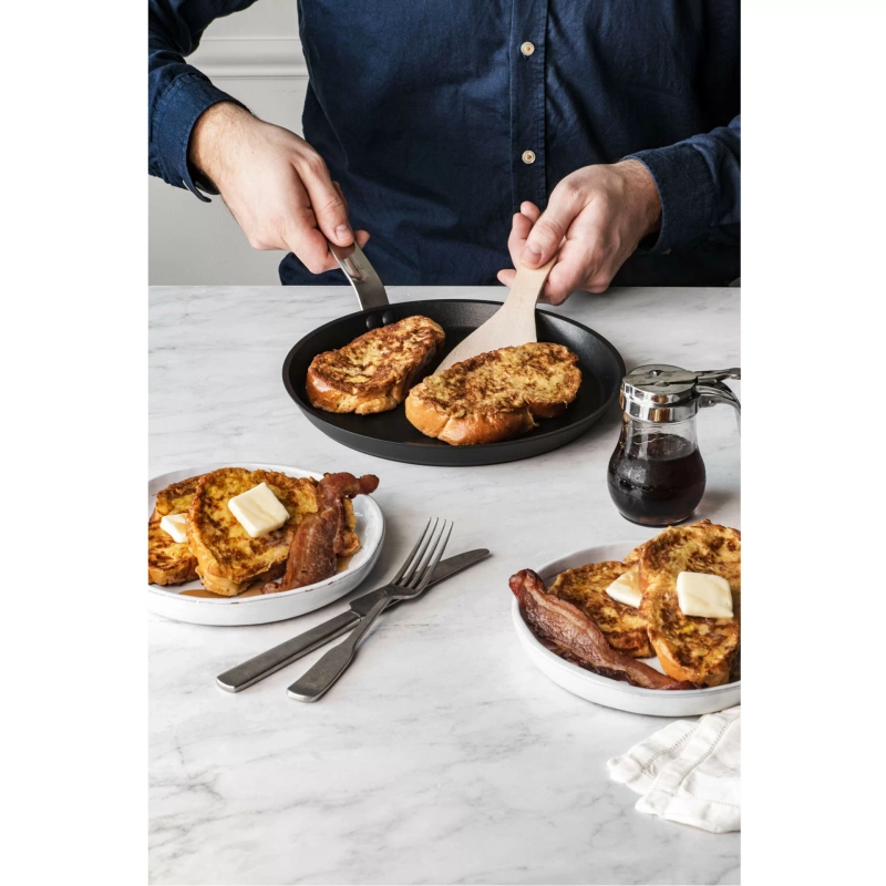 Patelnie wykonane są z kutego aluminium o grubości 4 mm, co zapewnia doskonałe i równomierne rozprowadzanie ciepła oraz wyjątkową odporność na odkształcenia. Taka konstrukcja dodatkowo chroni powłokę nieprzywierającą, zwiększając jej trwałość i żywotność.
