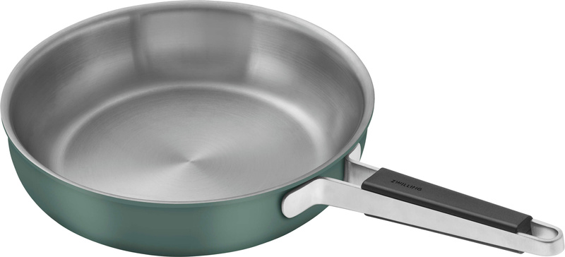 Patelnia ZWILLING Pure w kolorze zielonym łączy nowoczesny design z wysoką funkcjonalnością. Jest to pierwsza trójwarstwowa patelnia ze stali nierdzewnej z kolorową, ceramiczną powłoką zewnętrzną, która wyróżnia się trwałością i estetyką.