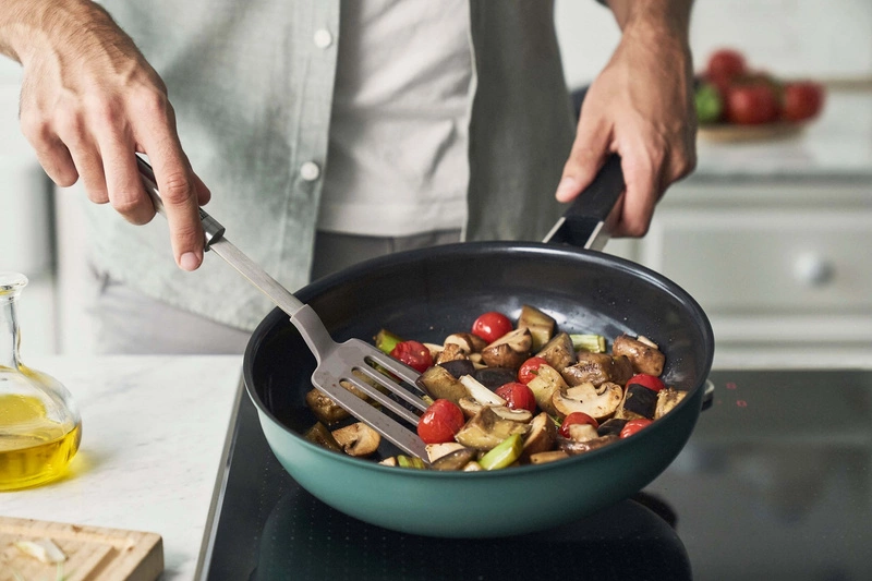 Wyjątkowa powłoka CERAFORCE® Black jest trzykrotnie bardziej trwała niż wcześniejsze wersje, odporna na zarysowania i nieprzywierająca, a także wolna od PFAS. Dzięki solidnej stali nierdzewnej patelnia jest trwała i higieniczna, a jej wielowarstwowe dno gwarantuje optymalne rozprowadzanie ciepła, co sprawia, że smażone potrawy są chrupiące i aromatyczne.
