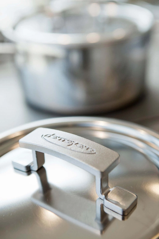 Dla ułatwienia pracy i zapewnienia poręczności oraz wygody użytkowania garnek wyposażono w dwa wygodne uchwyty z nieprzewodzącej stali nierdzewnej, które pozostają chłodne przez cały czas gotowania. Z niskim garnkiem Demeyere Industry ze szczelną pokrywą Państwa ulubione potrawy zachwycą gości nie tylko smakiem, ale też błyskawicznym, energooszczędnym przygotowaniem.