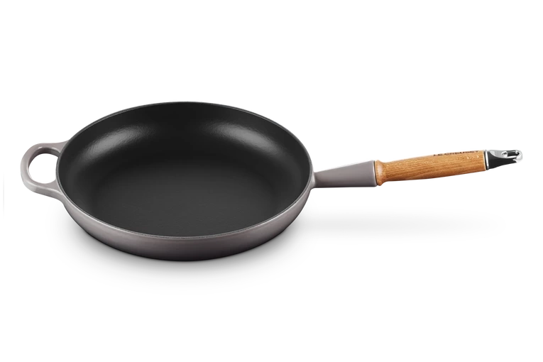 Żeliwna patelnia Le Creuset Signature Flint z drewnianym uchwytem średnica 26 cm.