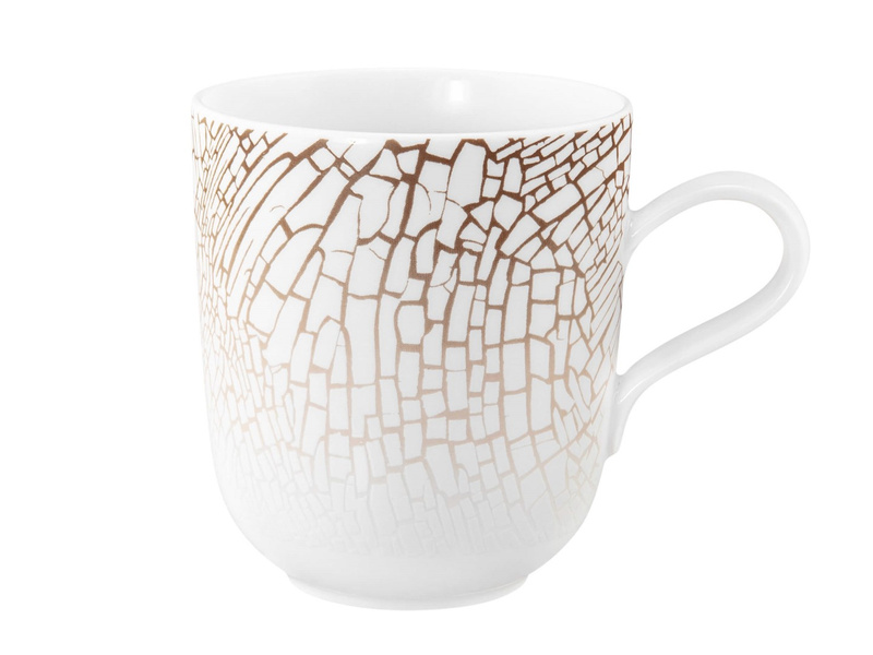 Metaliczny blask dekoru Krakelee przyciąga wzrok i zachwyca swoją oryginalnością. Delikatnie rozmywający się wzór tworzy wrażenie ruchu, co nadaje kubkowi dynamicznego, a zarazem eleganckiego charakteru. Ergonomiczne ucho gwarantuje wygodę, a pojemność 0,4 l idealnie pasuje do długich chwil relaksu z kawą, herbatą lub gorącą czekoladą.