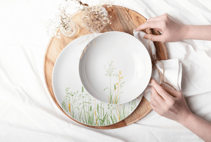 Wzór wysokich traw w odcieniach zieleni i żółci, naniesiony na białą porcelanę, tworzy niepowtarzalny efekt kojącej świeżości. Zestaw składa się z 6 talerzy obiadowych i 6 głębokich, które łączą piękno z trwałością – porcelana jest odporna na zarysowania i łatwa w pielęgnacji. Subtelna struktura i staranne wykończenie każdego elementu podkreślają kunszt wykonania, wprowadzając harmonię do aranżacji na Twoim stole.