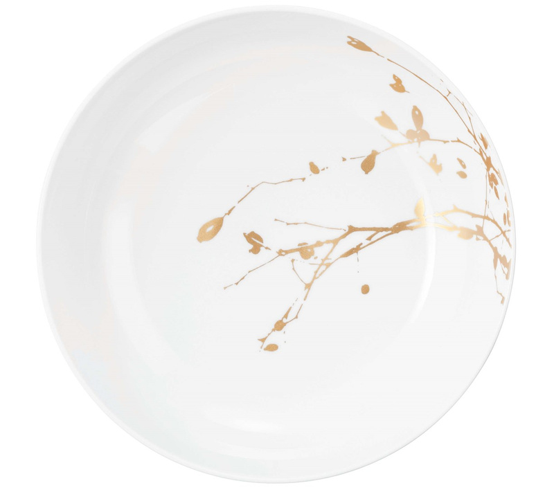 Dekor Golden Rose Hip zachwyca subtelnymi motywami inspirowanymi naturą i delikatnym złotym kolorem, które podkreślają wyjątkowy charakter miski. Porcelana najwyższej jakości zapewnia trwałość oraz łatwość użytkowania, a kształt dodaje całości nowoczesnego wyrazu. To idealne naczynie zarówno na co dzień, jak i na specjalne okazje.